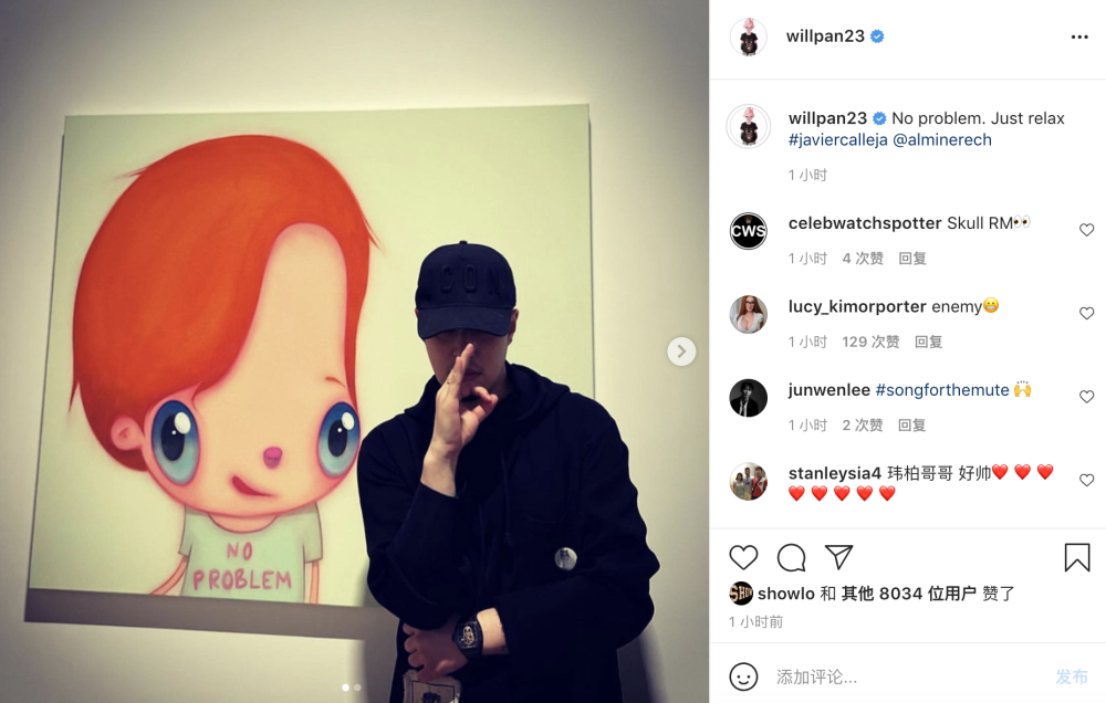 6月26日,潘玮柏发布动态,晒出一张与艺术作品的合影,并附文“没问题,放松就好”。拍照姿势是一如既往地又酷又帅,文案标签则透露了此次展览的内容。