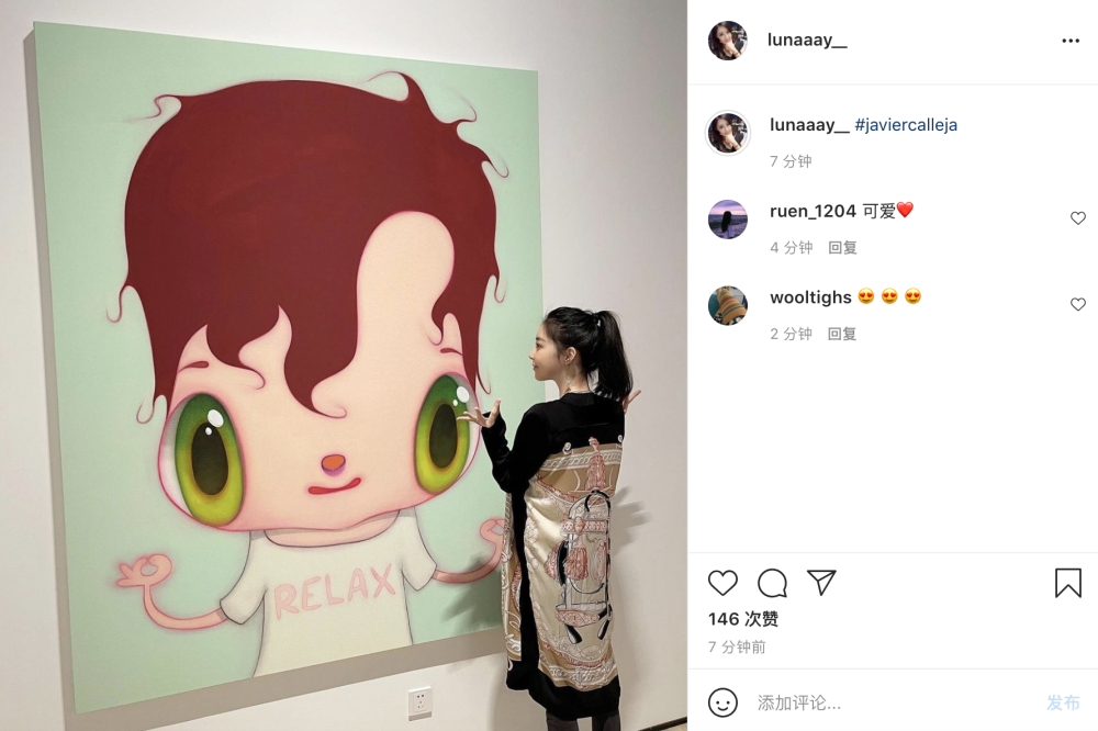 所以两口子这是在一起看展的节奏啊,而且互相为对方掌镜,拍下彼此,真是赤裸裸地秀恩爱!让我们干了这碗狗粮!