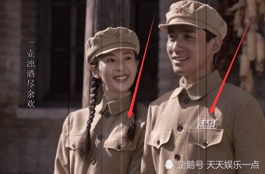 在最后拍照这个环节也有一个小细节,那就是女主穿的衣服和男主不同,剧中除了女主,其他人的衣服胸口位置都有解放军的牌子,而女主的衣服上并没有,也暗示女主并没有看到解放就牺牲了,这一切仍然是男主的美好幻想。