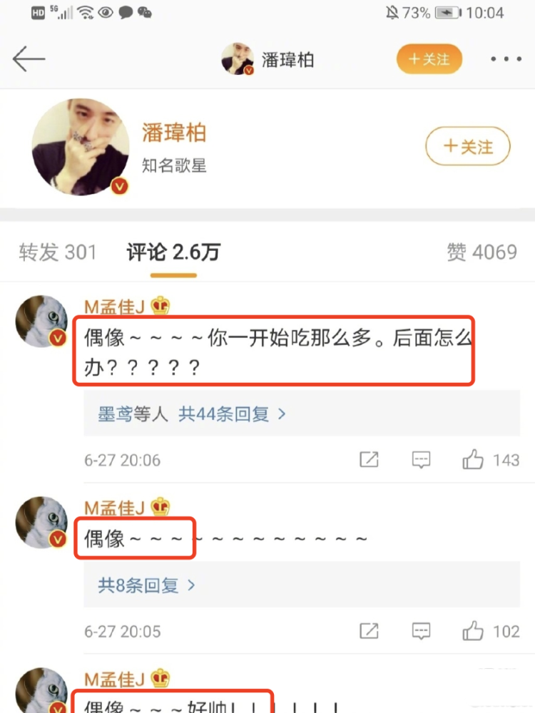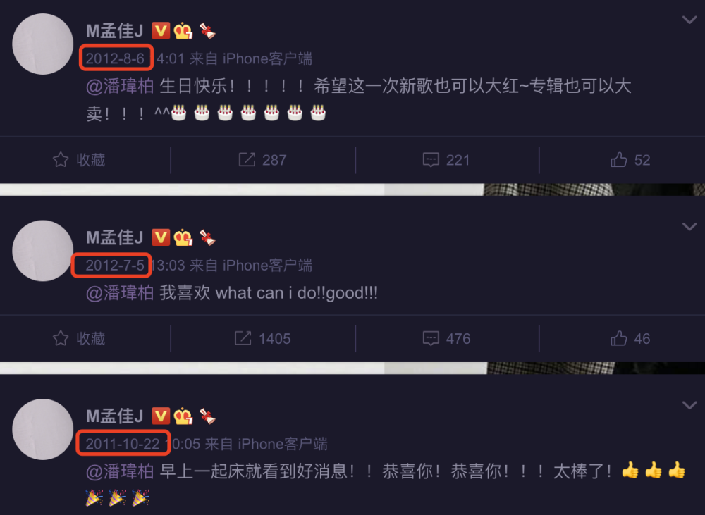 后来孟佳和自己的偶像成为了朋友,2011年开始,孟佳开始经常在网上cue潘玮柏,发表各种有的没的,就喜欢艾特对方。