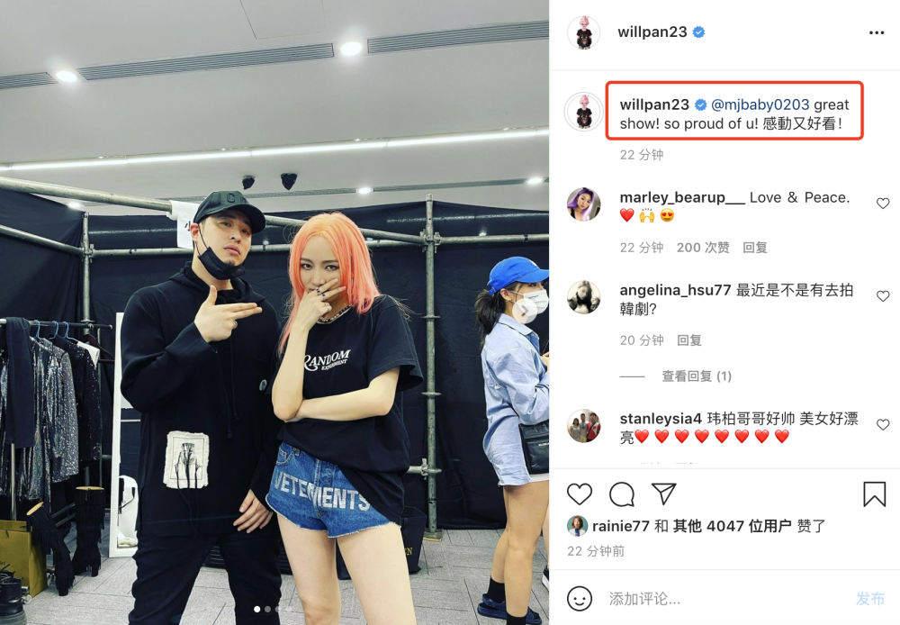 潘玮柏对孟佳给予了很高的评价:非常棒的演出,为你感到自豪!感动又好看!杨丞琳也悄咪咪地点了个赞,以表对孟佳的支持。