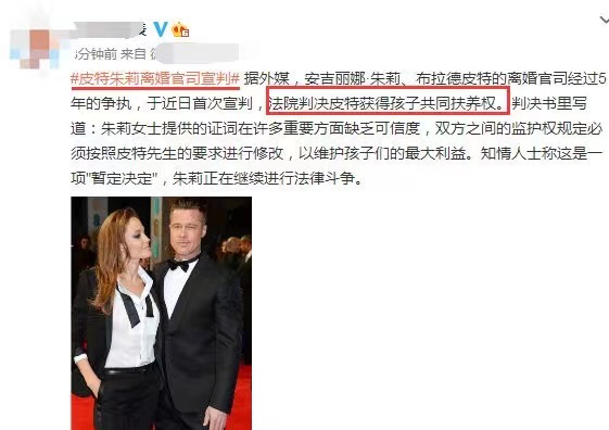 然而,朱莉和布莱德·皮特的抚养权争夺案,至今都还没有结束。