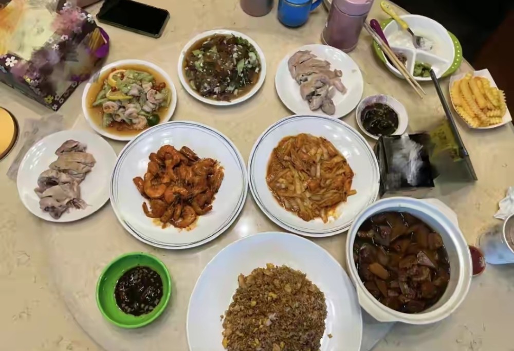 6月30日,黄晓明在深夜晒出了一桌子美食,并且配文说是自己做好的功课。美食都是中餐,有白斩鸡、卤肉、虾头炒白菜、茄汁大虾和酱油炒米饭等,这是一顿丰富多彩的大餐,平淡中带着油腻,平常中带着特殊。
