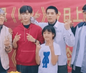 (演员穿上了统一带“吉”的白短袖)