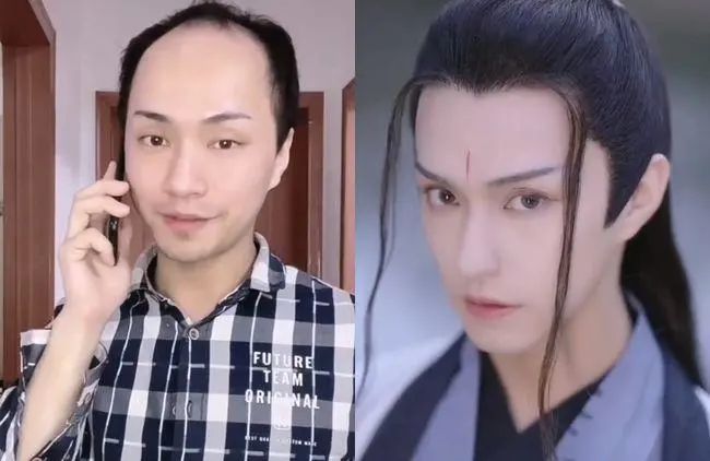 变装前,他是丢进人群就找不到的普通男子,颜值普通,身材普通,穿着更普通。变装后,他是帅气逼人的古装帅哥,眉目含情,可正义可邪魅。