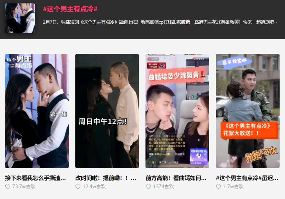 在一定圈层内,观众也对微短剧报以热情。上半年里,抖音推出的《做梦吧 晶晶》主话题播放量达7.2亿次,官方抖音账号播放量2.9亿;快手平台推出的《这个男主有点冷》共收获了9.3亿的总播放量,主角账号涨粉超500万。