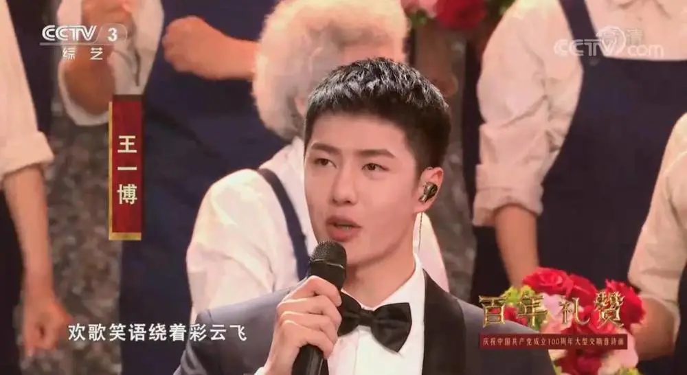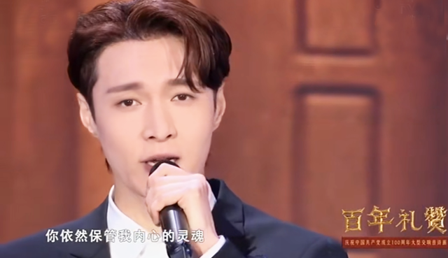 全能艺人张艺兴在百年礼赞晚会上深情演唱《七子之歌》,以歌声致敬百年峥嵘岁月。身着黑色镂空星星西装的张艺兴更加迷人,整个人笔直挺拔,唱慢歌的张艺兴更加有魅力,温柔的声线纯净有力量。