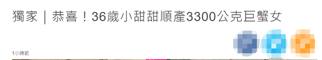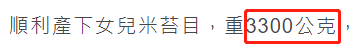 据悉,小甜甜的孩子重3300公克(约6.6斤),是一个可爱的小公主。