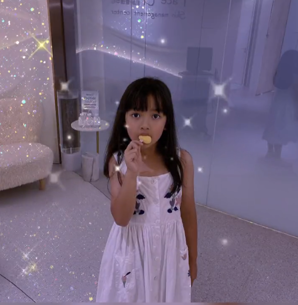 聂远的女儿五官精致、皮肤好可以说从小就是个美人坯子了。呆萌的表情加上大眼睛可以说看上去是个很澄澈天真的小女孩了。