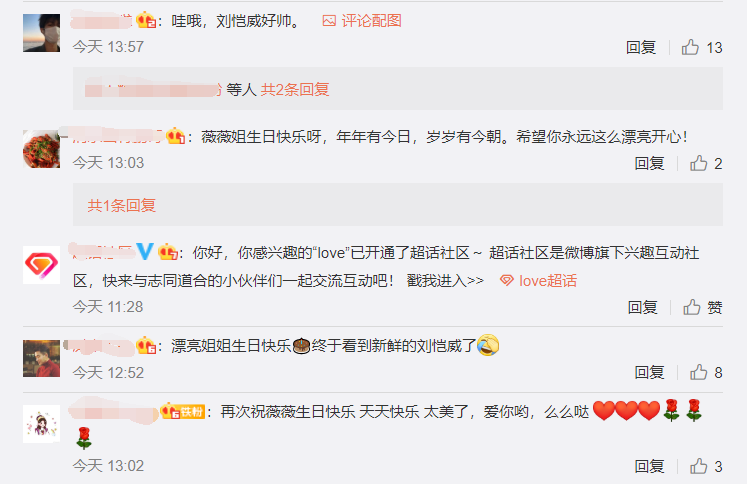 对此,网络上也有很多小伙伴纷纷留言给她送上祝福,打开评论区后都是清一色的“微微姐生日快乐”、“太美了,爱你呦”,果然美女的魅力是难以抵挡的。