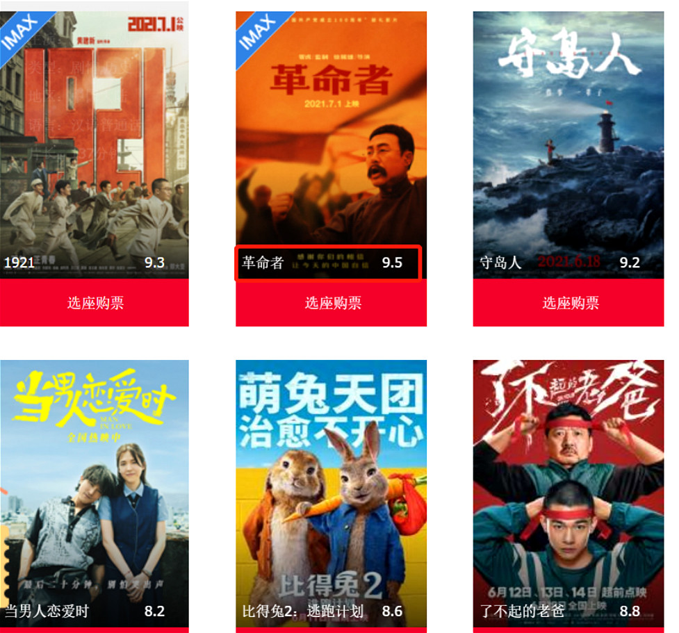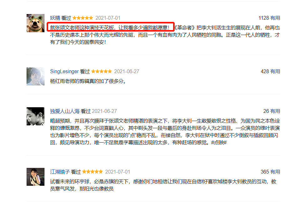 在张颂文的加持下,《革命者》的口碑彻底大爆发,在全网各大平台都是口碑榜第一名!三大主流电影评价平台猫眼、淘票票、豆瓣,《革命者》都是独领风骚者: