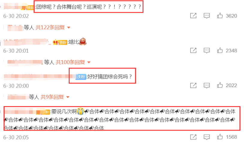 对于这一点,粉丝们纷纷吐槽起来,在打开这一条发布行程的微博后,小编发现下方基本都是在吐槽在开骂!有粉丝就很生气地留言:“团综呢?合体舞台呢?巡演呢?”“好好搞团综不行吗?”