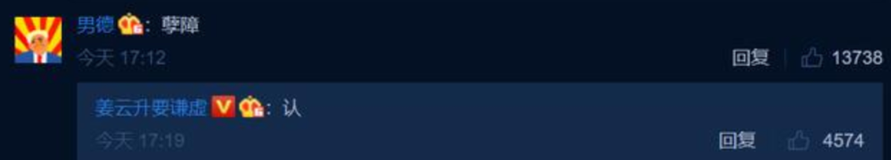 之后有网友留言痛骂他是“孽障”,姜云升也留言回复“认”。这一副躺平任嘲的姿态,看起来也是没得说了。但他大概想不到自己解释了一堆,结果被想蹭热度的兄弟在背后插刀了。