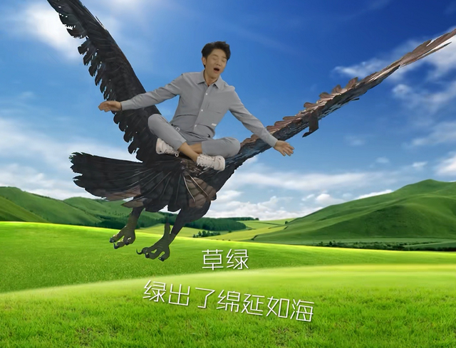 这支长达8分钟的MV,为网友们提供了欢乐源泉,从一开始“与太阳,肩并肩”的出场方式,到曾毅骑坐在大雕身上,每一个画面都自带笑点。