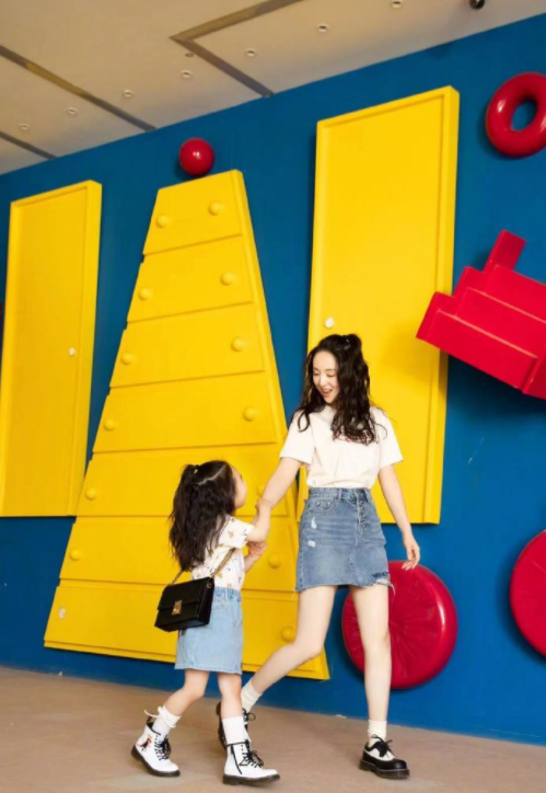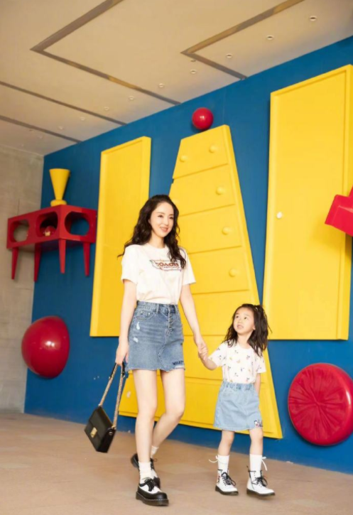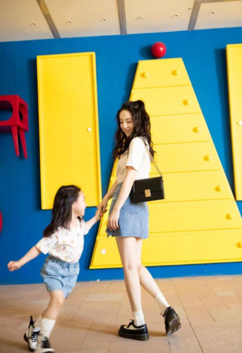 董璇陪着女儿嬉戏玩闹,酒窝拉着妈妈的手转圈圈,这个角度看董璇也太少女了吧……