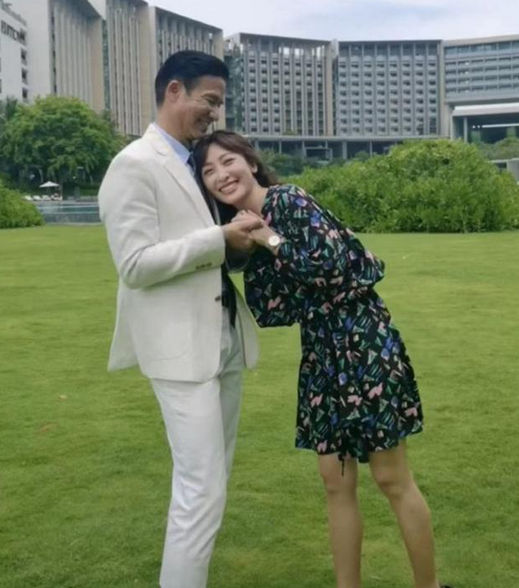 不过在怼脸的合影中,能看到李子雄脸上明显的皱纹,毕竟他比妻子大了23岁,两人的年龄差还是比较明显的。