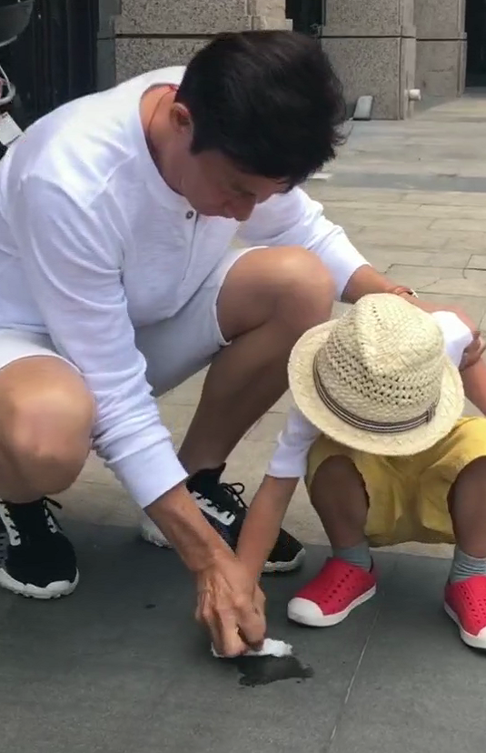 李子雄看到儿子不小心的浪费,恰着腰一脸严肃瞪着他,“反派”的气场油然而生,不过他终究是无奈地摇摇头,随后和儿子一起蹲下来清理地面,对孩子很有耐心。