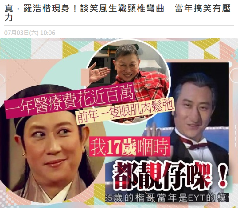 7月3日,根据港媒的报道,71岁老戏骨罗浩楷接受了好友邓英敏的专访,大谈那些年在娱乐圈的笑与泪。