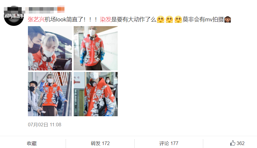 从照片中我们可以看到,张艺兴穿着红色的印花外套,戴着口罩出现在了机场,跟着身边的工作人员还在交流着什么。但是这帅气的模样,也瞬间吸引到了不少的目光。粉丝看到自己帅气的小哥又回来了,也都忍不住多拍一些路透。新发色下的张艺兴,又是一个看着才不过20岁出头的小鲜肉,这少年感绝了。