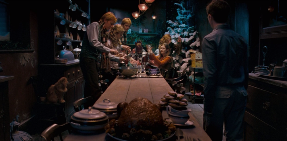 其实,细看电影中的道具,这场韦斯莱家的圣诞宴并不是太丰盛。在亚瑟刚刚出院的特殊时期,比起平安夜的大餐,一家人都平平安安的,才是韦斯莱家人最大的诉求。