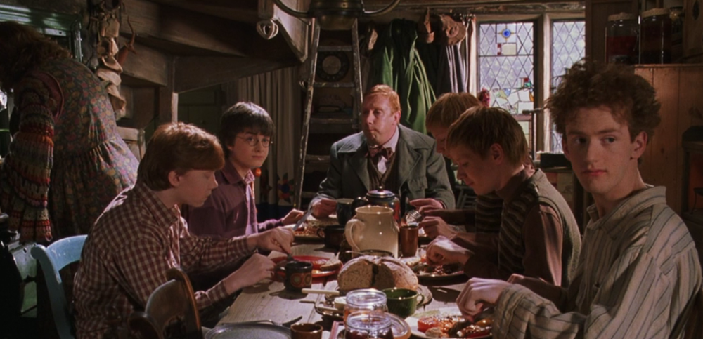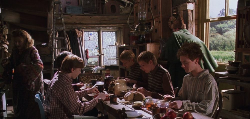 尽管陋居不像马尔福庄园那样富丽堂皇的,但它胜在“温馨”二字。一家人围坐在桌前吃饭,即便是粗茶淡饭,也会让人吃得津津有味。