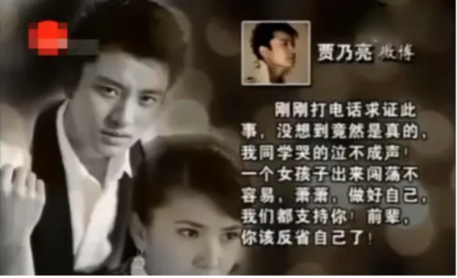 贾乃亮不仅将老同学边潇潇的品行夸了一通,说她德艺双馨,平易近人,