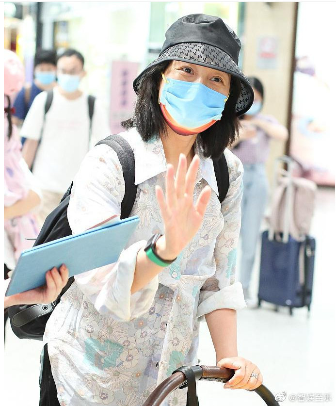 朱丹穿着很普通,一件碎花的衬衣下搭着宽松的阔腿裤,戴着一个黑色渔夫帽,背着黑色的背包,里面应该是装着小朋友需要的东西,打扮得十分低调。可以看见,这次虽然周一围没有陪在母子三人的身边,但朱丹的眼角都是笑容,还亲切地和周围的人打招呼。