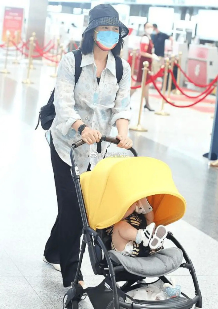 近日,有网友在机场偶遇朱丹和她的一双儿女,随行的应该是家里的保姆,可以看见,大女儿被一旁的保姆抱在身上,而她则推着在车里的小儿子。