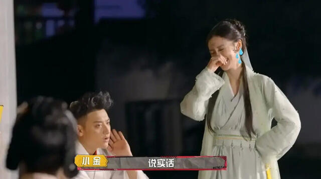 杨颖此时的状态显露出了内心真实的状态,她是很开心提到黄晓明的,黄晓明仍然是她心目中的王子。