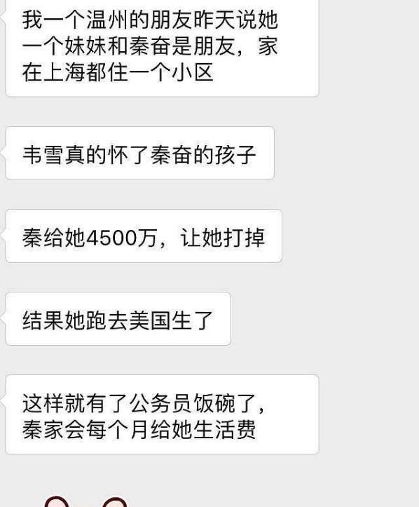 直到后来有网友爆料韦雪给秦奋生了一个儿子,各大网友也深陷扒扒扒之中。