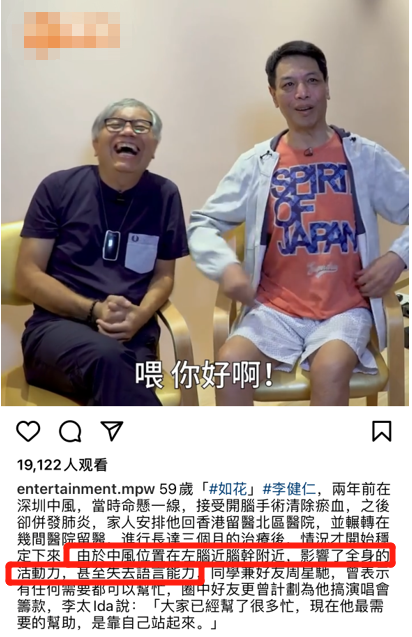 据悉,李健仁目前仍处于康复阶段,虽然恢复状态良好,但至今仍不能下地走路,刚患病时甚至丧失了语言能力,现在经过锻炼已经可以说话已经是万幸。