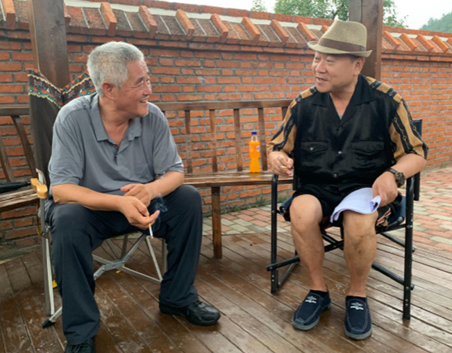 王小宝的旁边是《刘老根4》和《刘老根5》的导演成红,同时他还在剧中扮演“老丁”丁德本。