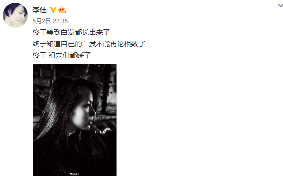 而对于岁月在自己身上留下的痕迹,她本人也能坦然面对。之前李佳就曾发文直言:“终于等到白发都长出来了,终于知道自己的白发不能再论根数了”。