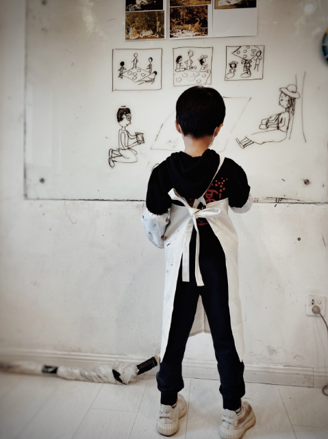 当然,在妈妈的悉心陪伴照顾下,两个儿子健康成长的同时,还被培养得十分优秀,其中,才6岁的大儿子在画画方面就颇有天赋。