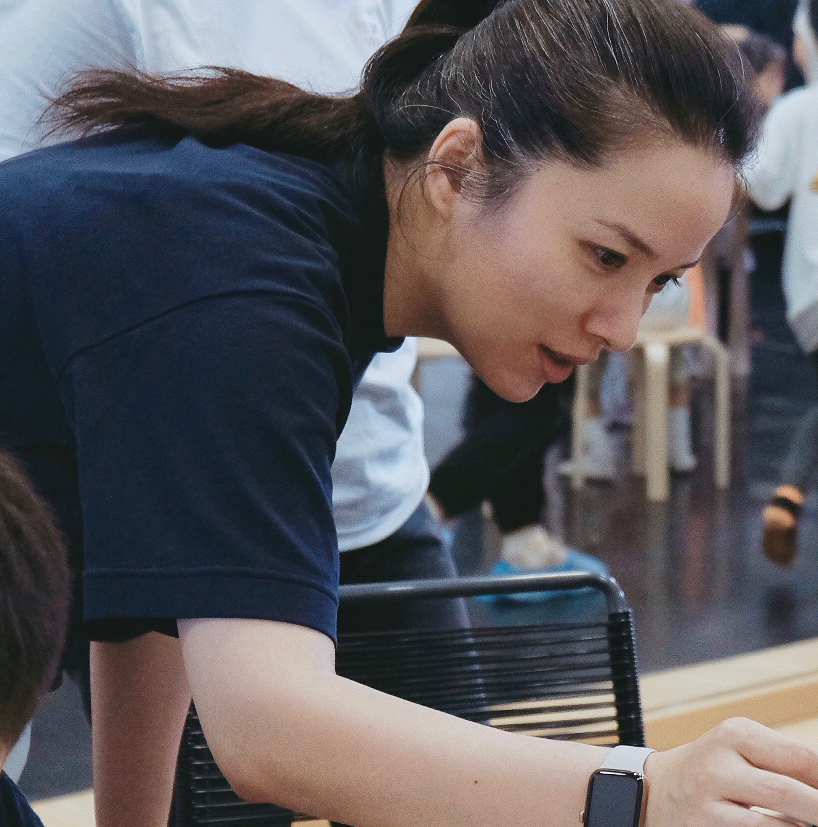 照片中,李佳头扎高马尾身穿黑色T恤,嘴角微微上扬,俯身弯腰正在整理6岁大儿子的作品,透过李佳的表情不难看出,她对儿子的作品很满意,充满自豪。快让我们也来看看弟弟的作品吧。