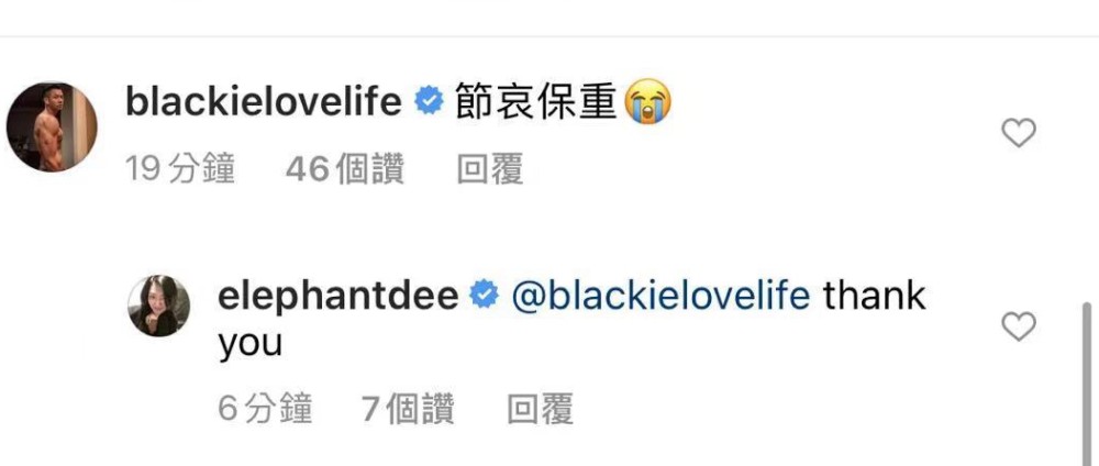 大小S的好友“黑人”陈建州第一时间留言,希望小S节哀保重,小S也立即回复对方,用英文写了一句“谢谢”,看似心情并不沉重,确实是用爱来送别外婆。