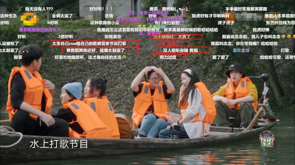 例如,一行人去划船,飞行嘉宾金靖和刘胜瑛这两个欢喜团子不断地在那抖包袱,隔着屏幕都得让人笑破肚皮的节奏,突然黄雅莉冷不丁地唱起歌来,原本还想听俩人说上几句的小编,一时间就感到挺恼火的,瞬间心里憋得慌。