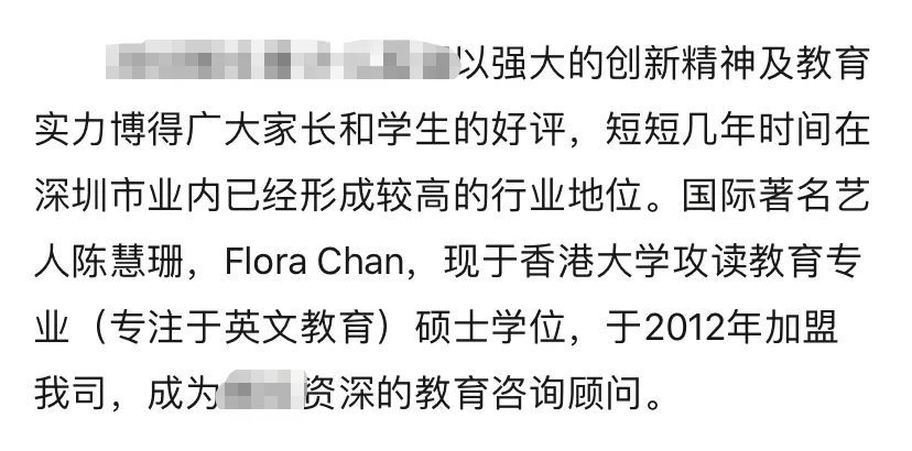 陈慧珊与教育机构其实已经合作多年了,早在2012年,陈慧珊就为他们站过台。所以说,陈慧珊并不是一名全职的一线英文老师。