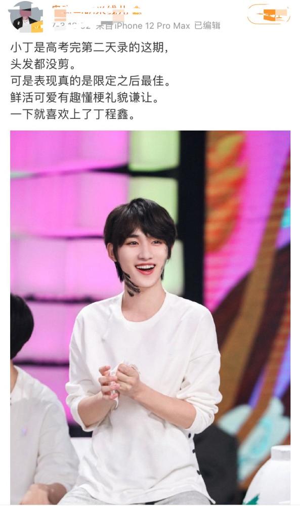 这一期的《快乐大本营》是丁程鑫高考结束后第二天录制的,时间也是比较紧急的,他非常迫切来到长沙与大家汇合,看他的头发就知道了,闭关之后一直没有时间剪头发,高考结束后就工作,头发都遮住眼睛了也没有打理,就这样录制的节目,导演也发文喜欢上了小丁,除了工作积极之外表现还很棒。