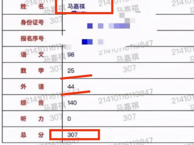 随后更是传出了数学25分,英语44分,总分307分的成绩,虽然很多粉丝疯狂否认,但随后有了更切实的证明,证明马嘉祺的高考成绩确实如此。