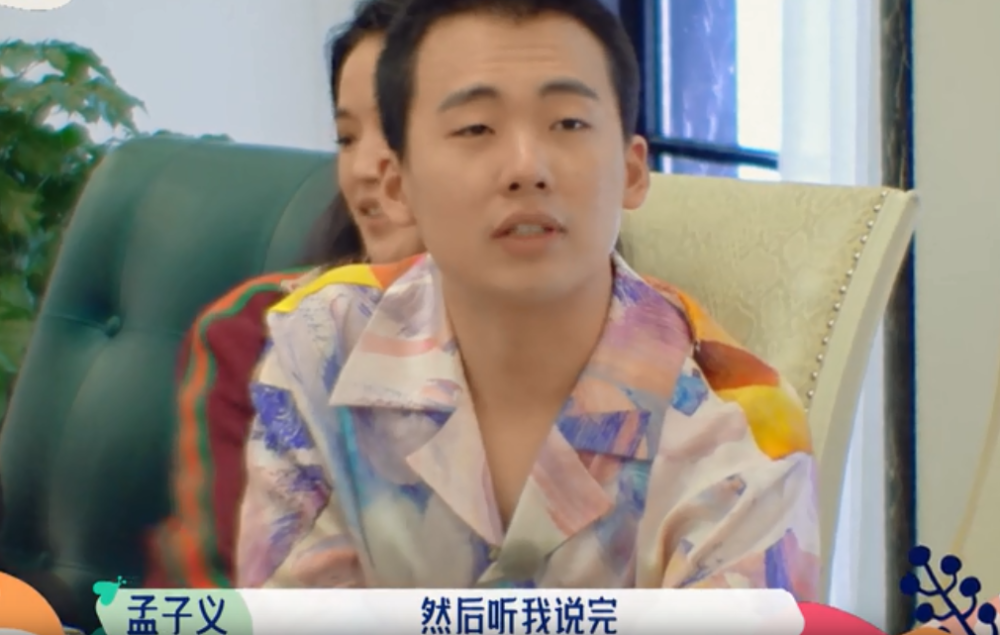 其他人也多少不尊重孟子义,汪苏泷和赖冠霖说悄悄话,舒淇和身边人谈笑风生,郭麒麟翻书,周杰戴墨镜看手机,苏芒心不在焉,欧欧和李雪琴互相对视,只有周也、张翰、宋丹丹、陈陈陈是真正在听孟子义说话。