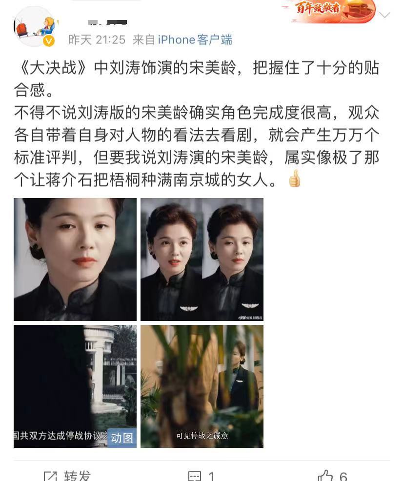 当然也有网友认为刘涛版的宋美龄比较贴近角色,特别是外形很像,演出了让老蒋为之倾倒的魅力。