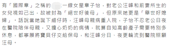 章子怡对家庭的付出,让婆婆也看在眼里,婆婆生病入院时,章子怡不顾刚刚生下二胎的身体,去医院照顾婆婆,帮助老公汪峰分担,赢得了婆婆的赞美。