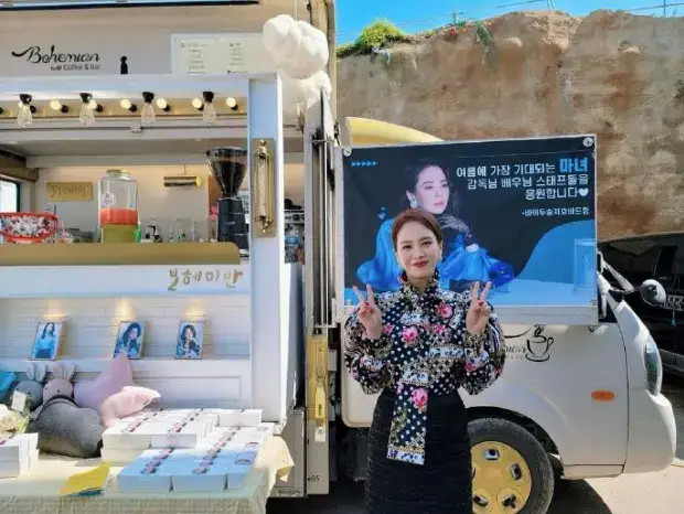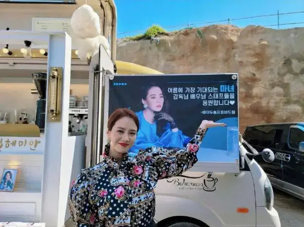 中国粉丝为宋智孝送去应援咖啡车!宋智孝发文感谢大家的喜欢!