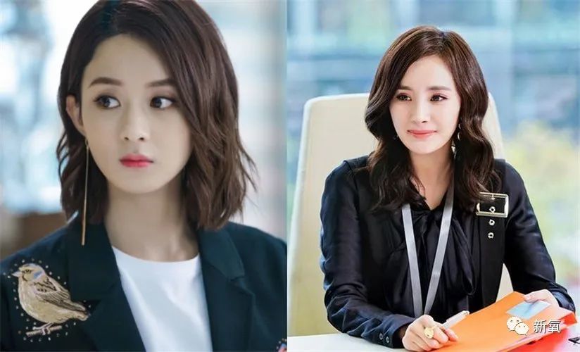 相比之下,像赵丽颖、杨幂这种偏圆的脸型,本身带有很强的幼齿感,就很难给人比较强的职场信任感。