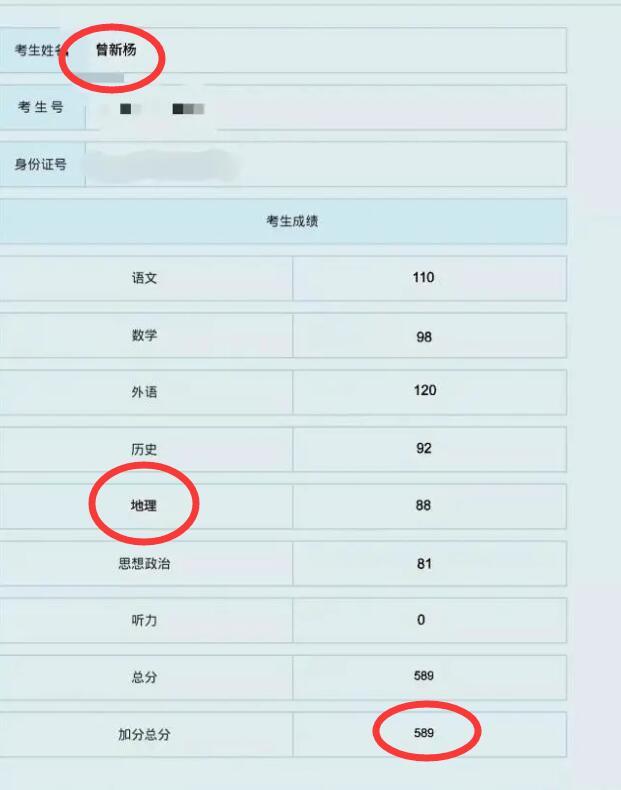 很快,就有网友发现这张成绩单有问题,字体都不一致。而“曾新杨高考文化课分数589分”,已被很多YXH转载,这就很尴尬了。