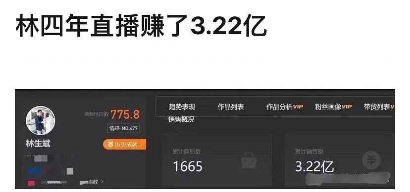 许多网友同情他的经历,也希望尽绵薄之力鼓励他开启新生活,都跑去支持他的生意,店铺关注人数一年之间从1万飙升到100万,直播销售额四年累计3个亿。