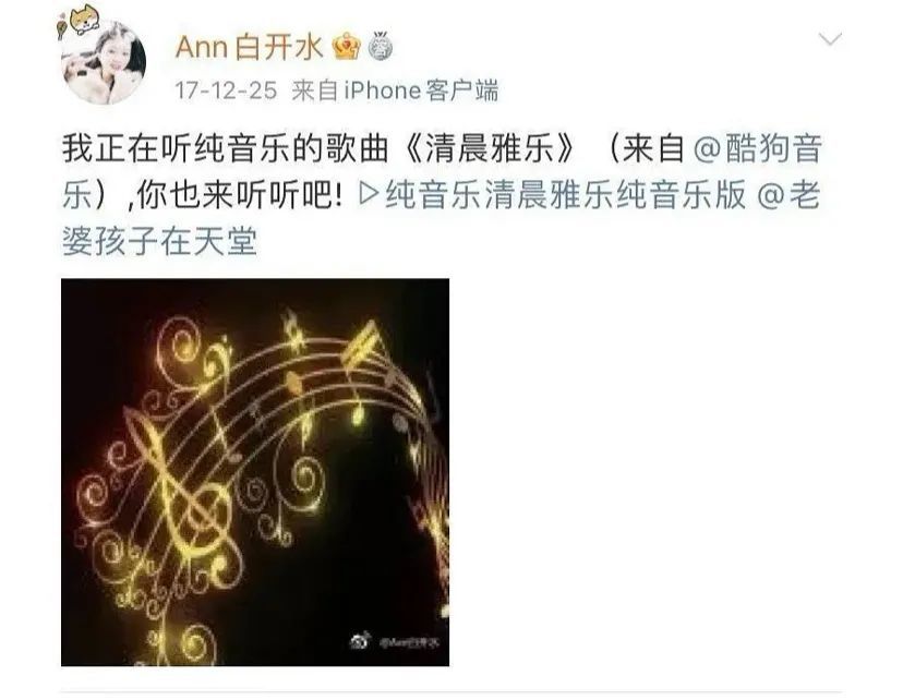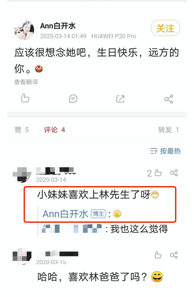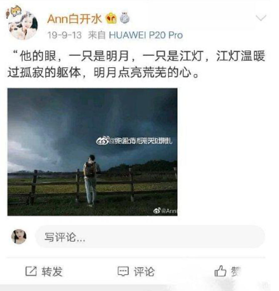林生斌发完微博之后,很快就有人挖到了疑似现任的微博。是一位id叫做Ann白开水的97年小女生。