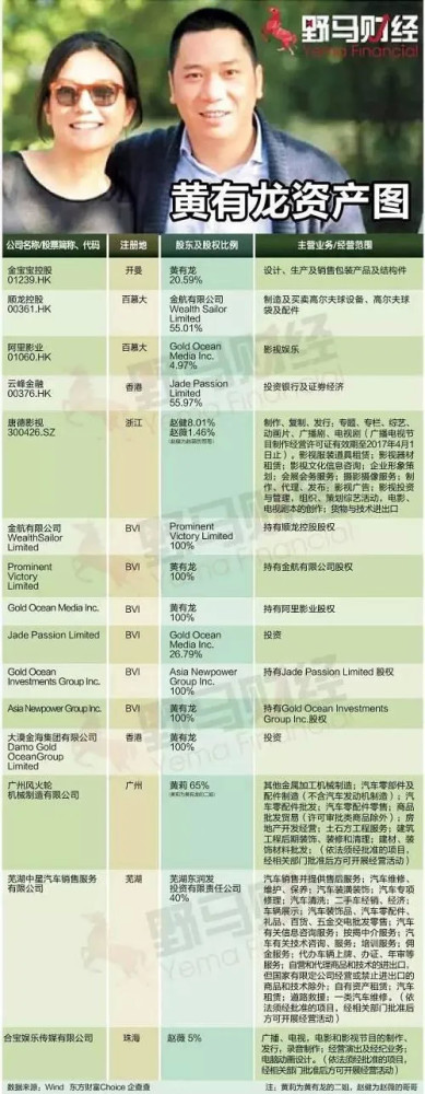 二人还曾投资了金宝宝控股(1239.HK)、顺龙控股(0361.HK)、阿里影业(01060)、云锋金融(0376.HK)、唐德影视等多家上市公司股权。2019年10月10日,黄有龙、赵薇夫妇以45亿元位列《2019年胡润百富榜》第912位。