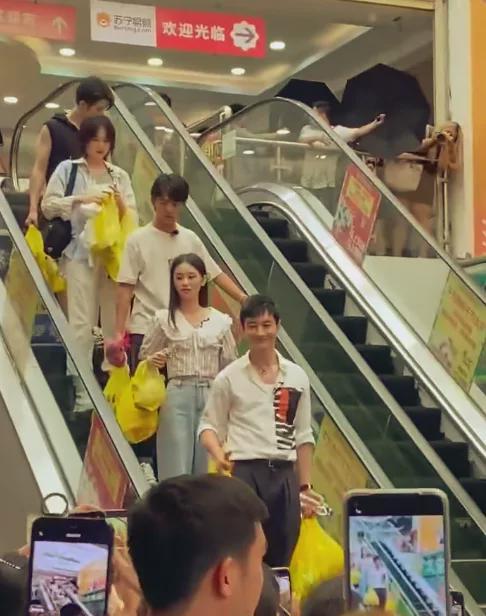最开始一行人刚下电梯时,围观群众就有不少人喊黄晓明的名字,黄晓明双手都拎着食材,即便这样他还是伸出右手与下边的群众打招呼。后边的周也跟丁真看到围观群众这么热情,也是伸出手回应,非常亲切。